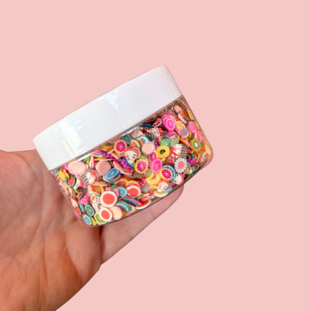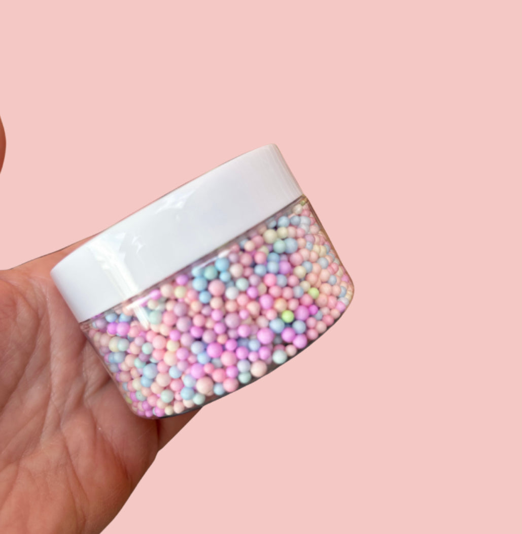 In this stack you will receive a 100ml tub of Bingsu Beads, Fimo Slices and Foam Balls. Add to your slime for an extra crunchy squish or use for craft projects to add an extra sparkle.